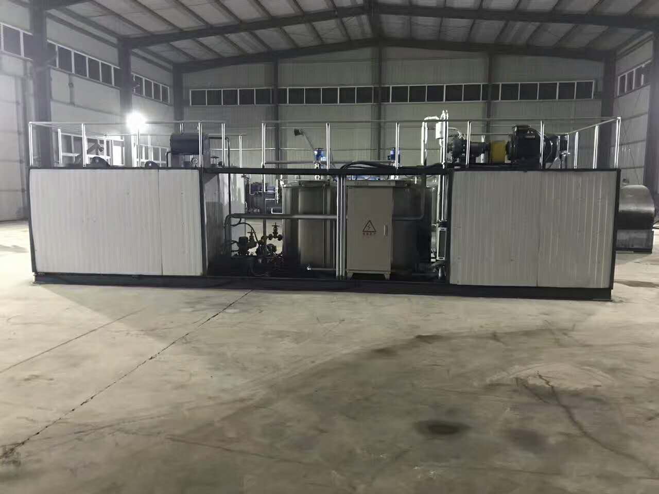 乳化瀝青機(jī)組由瀝青過(guò)渡罐、乳化液摻配罐、成品罐、調(diào)速瀝青泵、調(diào)速乳液泵、乳化主機(jī)、成品輸送泵、電控柜、大底板、管道、閥門(mén)等組成。