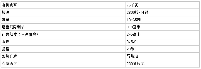 高速剪切均化磨技術(shù)參數(shù)(30T/小時)