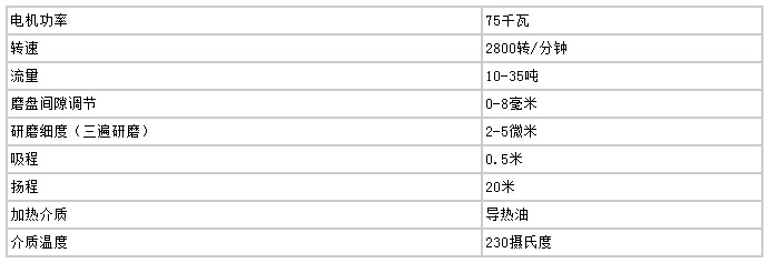 高速剪切均化磨技術(shù)參數(shù)(30T/小時(shí))