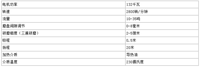 高速剪切均化磨技術(shù)參數(shù)(30T/小時(shí))